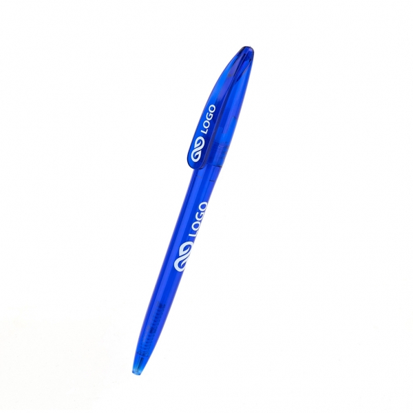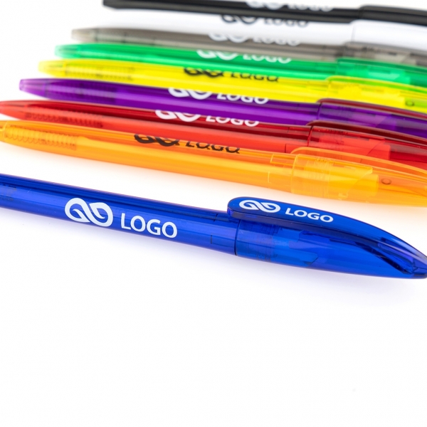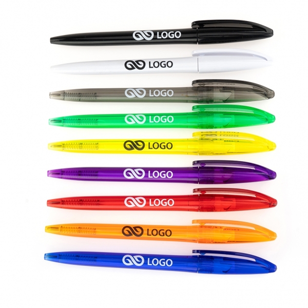 Waga: 8,5 g / Długość: 145 mm / Rozmiar nadruku: korpus 55 x 7 mm, klips 30 x 6 mm / Typ wkładu: Slim - niewymienny / Kolor wkładu: niebieski / Odblokowanie wkładu: przekręcenie / Tworzywo: ABS, Frosty / Opakowanie: 100 szt. / Kolor: do wyboru (niebieski, zielony, czerwony, pomarańczowy, fioletowy, biały, żółty, czarny (Solid - pełny), czarny (transparentny) /