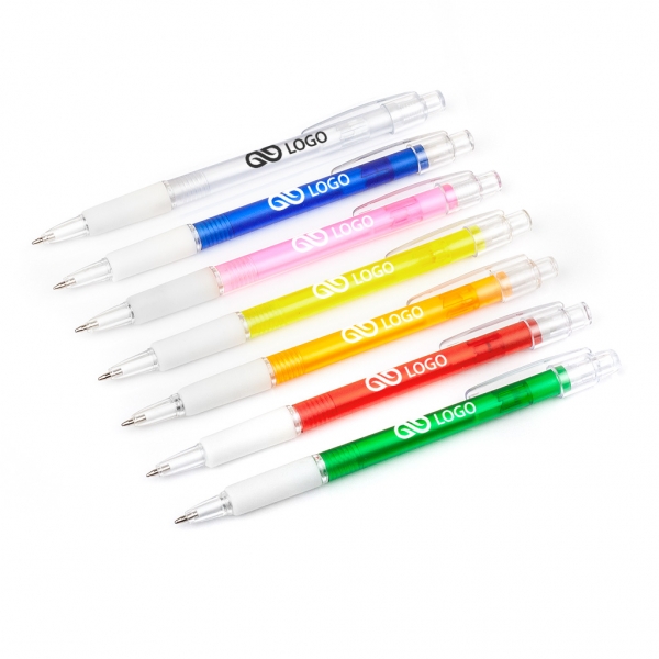 Model Tokio to idealne połączenie trzech najważniejszych cech gadżetu reklamowego: wysokiej jakości, niskiej ceny oraz nietuzinkowego wyglądu. Elementy tego długopisu wykonano z transparentnego plastiku, co zdecydowanie podnosi jego wartość estetyczną i tym samym czyni go najpopularniejszym artykułem piśmienniczym spośród naszej oferty. Wskazany model oferujemy klientom w pełnej gamie kolorystycznej. Pisząc o atutach długopisu Tokio nie można zapomnieć także o wygodnym mechanizmie przyciskowym i antypoślizgowej gumce, zapewniającej komfortowe pisanie.