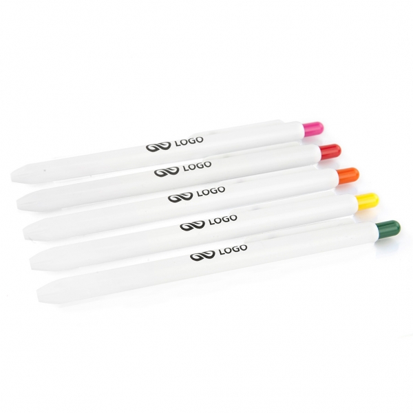 Waga: 6,8 g / Długość: 140 mm / Rozmiar nadruku: korpus 55 x 6 mm, klips 35 x 5 mm / Typ wkładu: Slim - niewymienny / Kolor wkładu: niebieski / Odblokowanie wkładu: wciśnięcie / Tworzywo: ABS / Opakowanie: 100 szt. / Kolor: do wyboru (granatowy, niebieski, czarny, zielony, czerwony, pomarańczowy, fioletowy, żółty, różowy, jasny niebieski) /