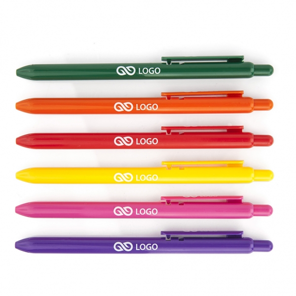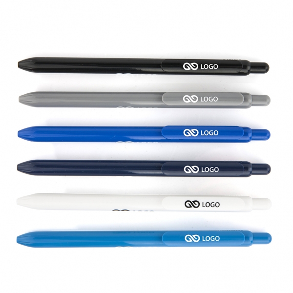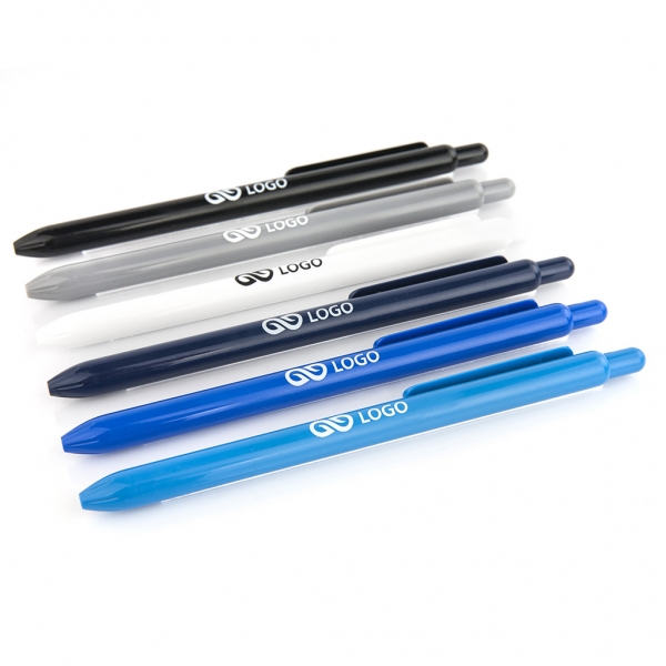 Waga: 6,8 g / Długość: 140 mm / Rozmiar nadruku: 55 x 6 mm / Typ wkładu: Slim - niewymienny / Kolor wkładu: niebieski / Odblokowanie wkładu: wciśnięcie / Tworzywo: ABS / Opakowanie: 100 szt. / Kolor: do wyboru (granatowy, niebieski, czarny, zielony, czerwony, pomarańczowy, fioletowy, biały, żółty, szary, różowy, jasny niebieski) /