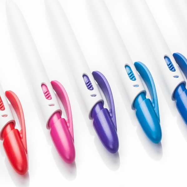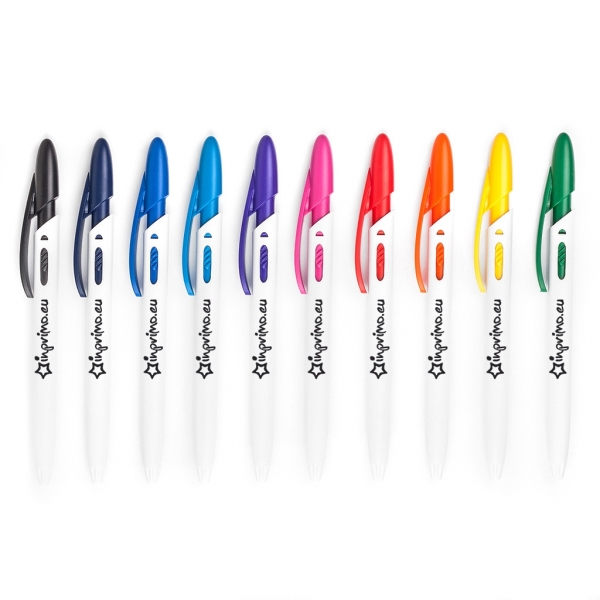 Biały korpus tego modelu, wykonany z pełnego, nieprzezroczystego plastiku jest doskonałym podłożem dla dowolnego nadruku reklamowego. Aby jednak zerwać z rutyną górna część korpusu, stanowiąca jednocześnie mechanizm przyciskowy, płynnie zlewająca się z zaokrąglonym klipsem, wykonana jest z plastiku w nasyconych barwach. Kontrast bieli oraz pełnych wyrazistości barw daje nowoczesną aranżację klasycznej formy, czym przyciąga uwagę do umieszczonego na korpusie znakowania.
