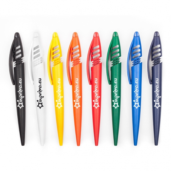 Model długopisu o futurystycznym, zaskakującym kształcie, którego płynna linia korpusu zwężającego się ku dołowi, zapewnia wygodne użytkowanie. Dodatkowym wzmocnieniem efektu wizualnego są wyraziste kolory, w jakich długopis Shark jest dostępny. Ten charakterystyczny długopis wyposażony został w przyciskowy mechanizm włączający oraz masywny korpus. Dobry jakościowo plastik, któremu nadano intensywne wybarwienie stanowi idealne tło dla wybranego nadruku.
