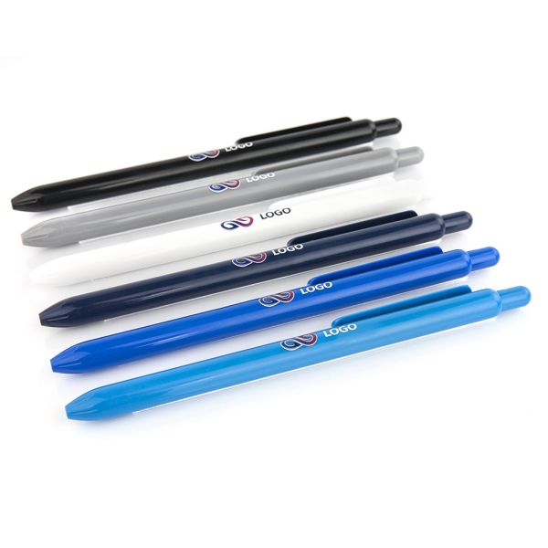 Waga: 6,8 g / Długość: 140 mm / Rozmiar nadruku: 55 x 6 mm / Typ wkładu: Slim - niewymienny / Kolor wkładu: niebieski / Odblokowanie wkładu: wciśnięcie / Tworzywo: ABS / Opakowanie: 100 szt. / Kolor: do wyboru (granatowy, niebieski, czarny, zielony, czerwony, pomarańczowy, fioletowy, biały, żółty, szary, różowy, jasny niebieski) /