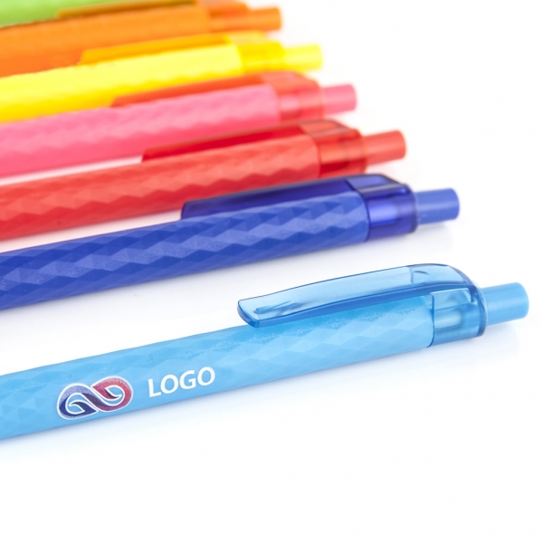 Waga: 6,8 g / Długość: 137 mm / Rozmiar nadruku: 55 x 7 mm / Typ wkładu: Elite / Kolor wkładu: niebieski / Odblokowanie wkładu: wciśnięcie / Tworzywo: ABS / Opakowanie: 100 szt. / Kolor: do wyboru (niebieski, czarny, czerwony, biały, żółty, szary, różowy, ciemny zielony, pomarańczowy, jasny zielony, jasny niebieski) /