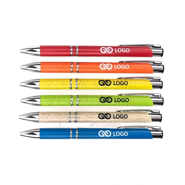Waga: 9,9 g / Długość: 137 mm / Rozmiar nadruku: korpus 55 x 7 mm / Typ wkładu: Elite - wymienny / Kolor wkładu: niebieski / Odblokowanie wkładu: wciśnięcie / Tworzywo: słoma pszeniczna / Opakowanie: 100 szt. / Kolor: do wyboru (niebieski, zielony, czerwony, pomarańczowy, żółty, beżowy) /