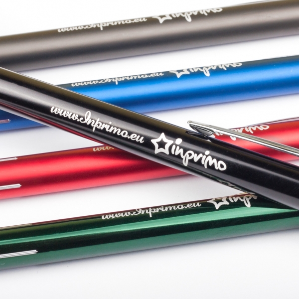 Waga: 13,6 g / Długość: 140 mm / Rozmiar graweru: 55 x 5 mm / Typ wkładu: Elite - wymienny / Kolor wkładu: niebieski / Odblokowanie wkładu: wciśnięcie / Tworzywo: Aluminium / Opakowanie: 50 szt. / Kolor: do wyboru (czarny, grafitowy, zielony, czerwony) /