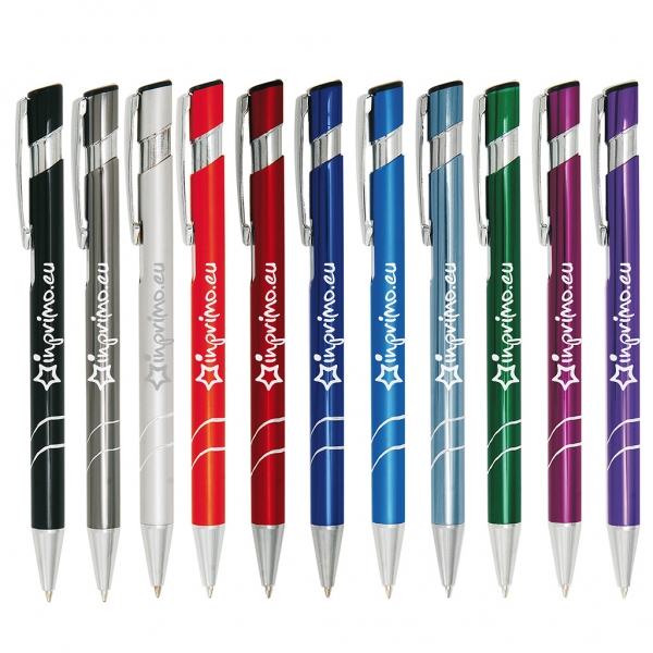 Waga: 17 g / Długość: 140 mm / Rozmiar graweru: 55 x 6 mm / Typ wkładu: Elite - wymienny / Kolor wkładu: niebieski / Odblokowanie wkładu: wciśnięcie / Tworzywo: Aluminium / Opakowanie: 50 szt. / Kolor: do wyboru (czerwony, pomarańczowy, fioletowy, ciemny niebieski - błyszczący, ciemny fiolet) /