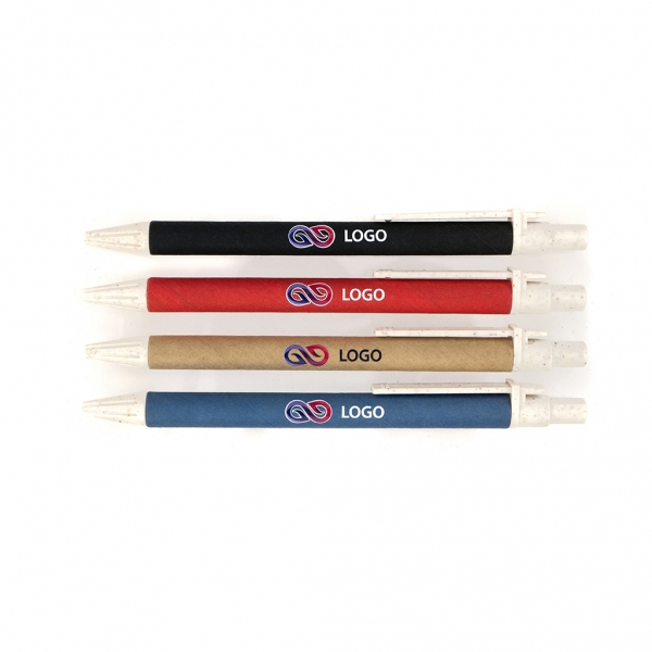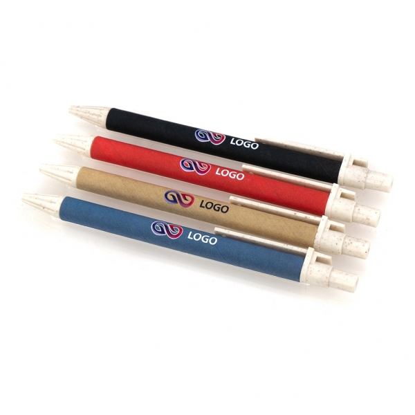 Waga: 6,5 g / Długość: 140 mm / Rozmiar nadruku: 55 x 6 mm / Typ wkładu: Slim - wymienny / Kolor wkładu: niebieski / Tworzywo: słoma pszeniczna / Odblokowanie wkładu: wciśnięcie / Opakowanie: 100 szt. / Kolor: do wyboru (niebieski, czarny, czerwony, beżowy) /