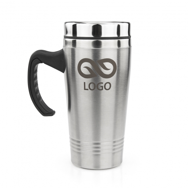 Waga: 230 g / Wysokość: 180 mm / Średnica: 80 mm / Rozmiar nadruku: 40 x 55 mm / Pojemność: 450 ml / Tworzywo: stal nierdzewna, plastik / Opakowanie: 10 szt. / Kolor: srebrny /