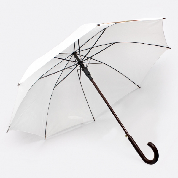 Parasol nie tylko skutecznie chroni przed deszczem czy silnymi podmuchami wiatru. idealnie sprawdza się także w roli gadżetu reklamowego. Coraz częściej nasi klienci decydują się na markowanie swojej działalności właśnie takim praktycznym upominkiem. Czasza parasola jest na tyle szeroka, że nawet najdrobniejszy umieszczony na niej nadruk, będzie dobrze wyeksponowany. Prezentowany tu model Antonio jest dostępny wyłacznie w kolorze białym, bo naszym zamysłem było wprowadzenie do sprzedaży uniwersalnego parasola, który mógłby promować każdą markę. Szeroka czasza i jej neutralny kolor to nie jedyne zalety tego produktu. Warto zwrócić uwagę,że parasol Antonio został wyposażony w metalowy szkielet, stalowe rozporniki i masywny drewniany uchwyt, co bezpośrednio potwierdza wysoką jakość wykonania,a Tobie daje gwarancję długowieczności produktu.